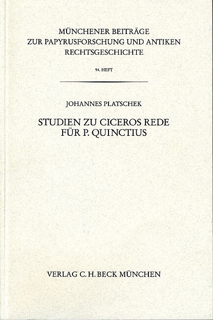 Münchener Beiträge zur Papyrusforschung und antiken Rechtsgeschichte / Münchener Beiträge zur Papyrusforschung Heft 94: Studien zu Ciceros Rede für P. Quinctius