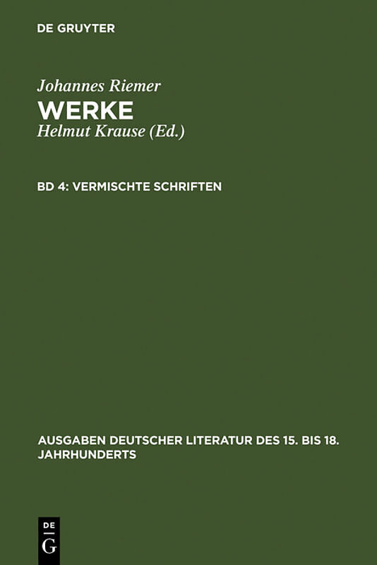 Die Reihe Ausgaben Deutscher Literatur des XV. bis XVIII. Jahrhunderts" startete 1967 mit dem Ziel, zur besseren Textkenntnis der vernachlässigten mittleren deutschen und neulateinischen Literatur beizutragen. In der Reihe erscheinen kritische Gesamtausgaben ...