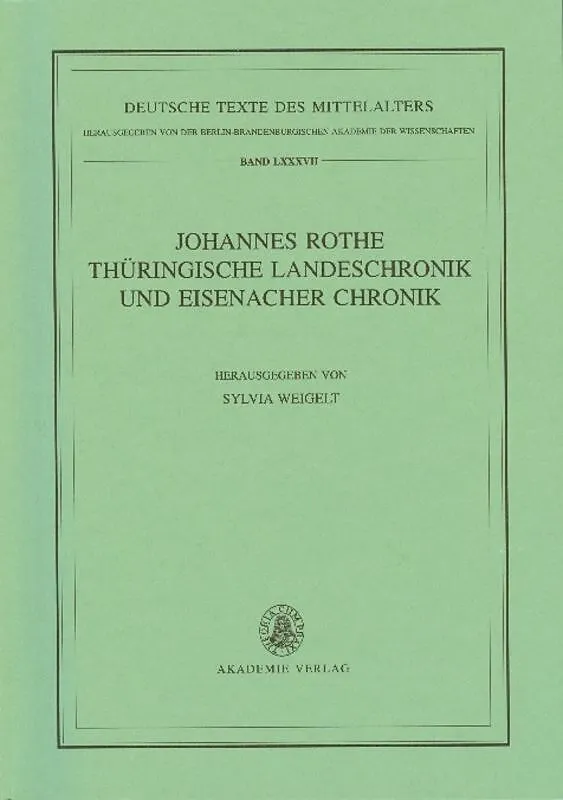 Der Kleriker und Stadtschreiber Johannes Rothe (ca. 13601434) verfasste neben Rechtsschriften, Gedichten und Legenden vor allem drei deutsche Chroniken, die unter verschiedenem Aspekt die Geschichte seiner thüringischen Heimat behandeln. Zwei dieser Chroniken ...