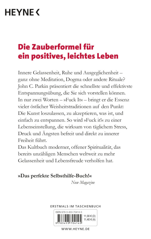 Innere Gelassenheit, Ruhe und Ausgeglichenheit ganz ohne Meditation, Dogma oder andere Rituale? John C. Parkin präsentiert die schnellste und effektivste Entspannungsübung, die man sich vorstellen kann. In nur zwei Worten »Fuck It« bringt er die Essenz vieler ...