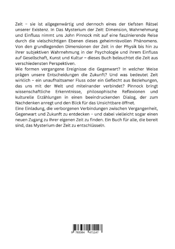 Zeit sie ist allgegenwärtig und dennoch eines der tiefsten Rätsel unserer Existenz. In Das Mysterium der Zeit: Dimension, Wahrnehmung und Einfluss nimmt uns John Pinnock mit auf eine faszinierende Reise durch die vielschichtigen Ebenen dieses geheimnisvollen P...