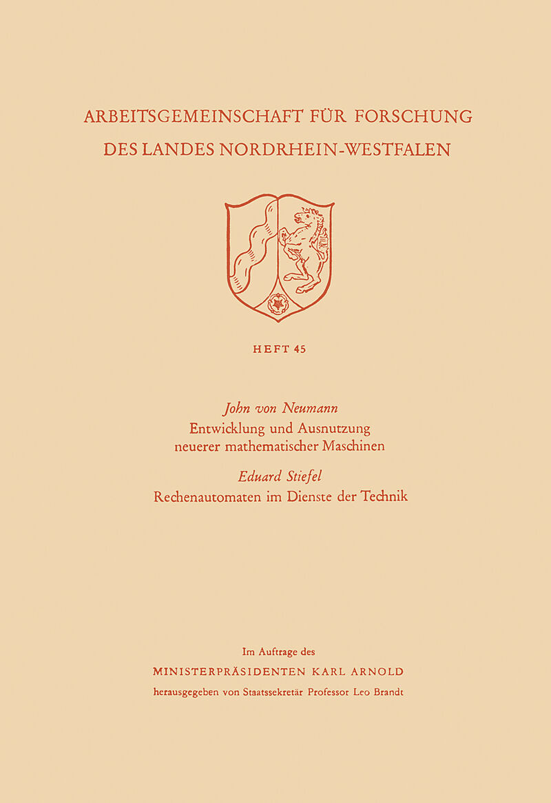 Entwicklung und Ausnutzung neuerer mathematischer Maschinen / Rechenautomaten im Dienste der Technik