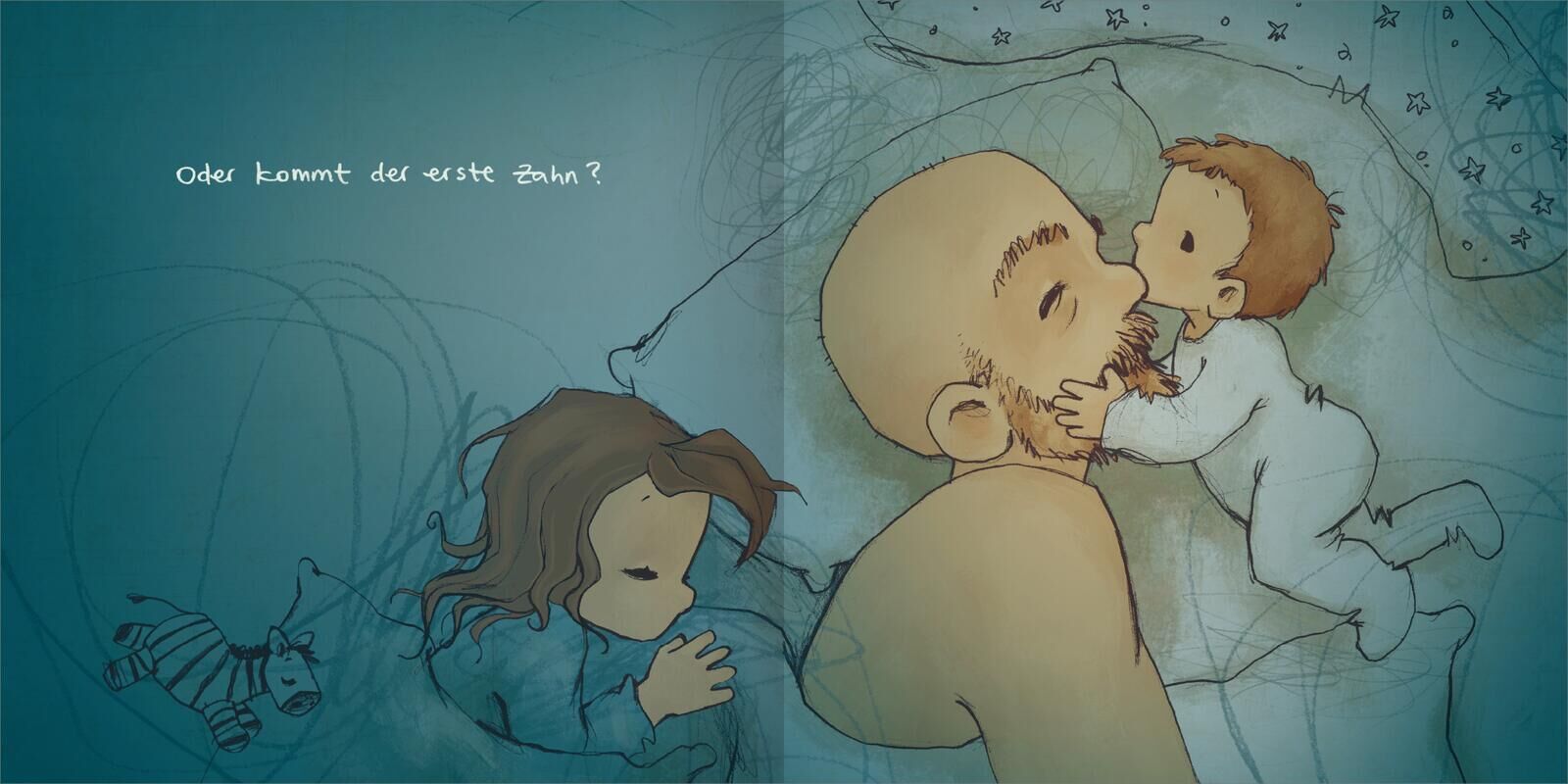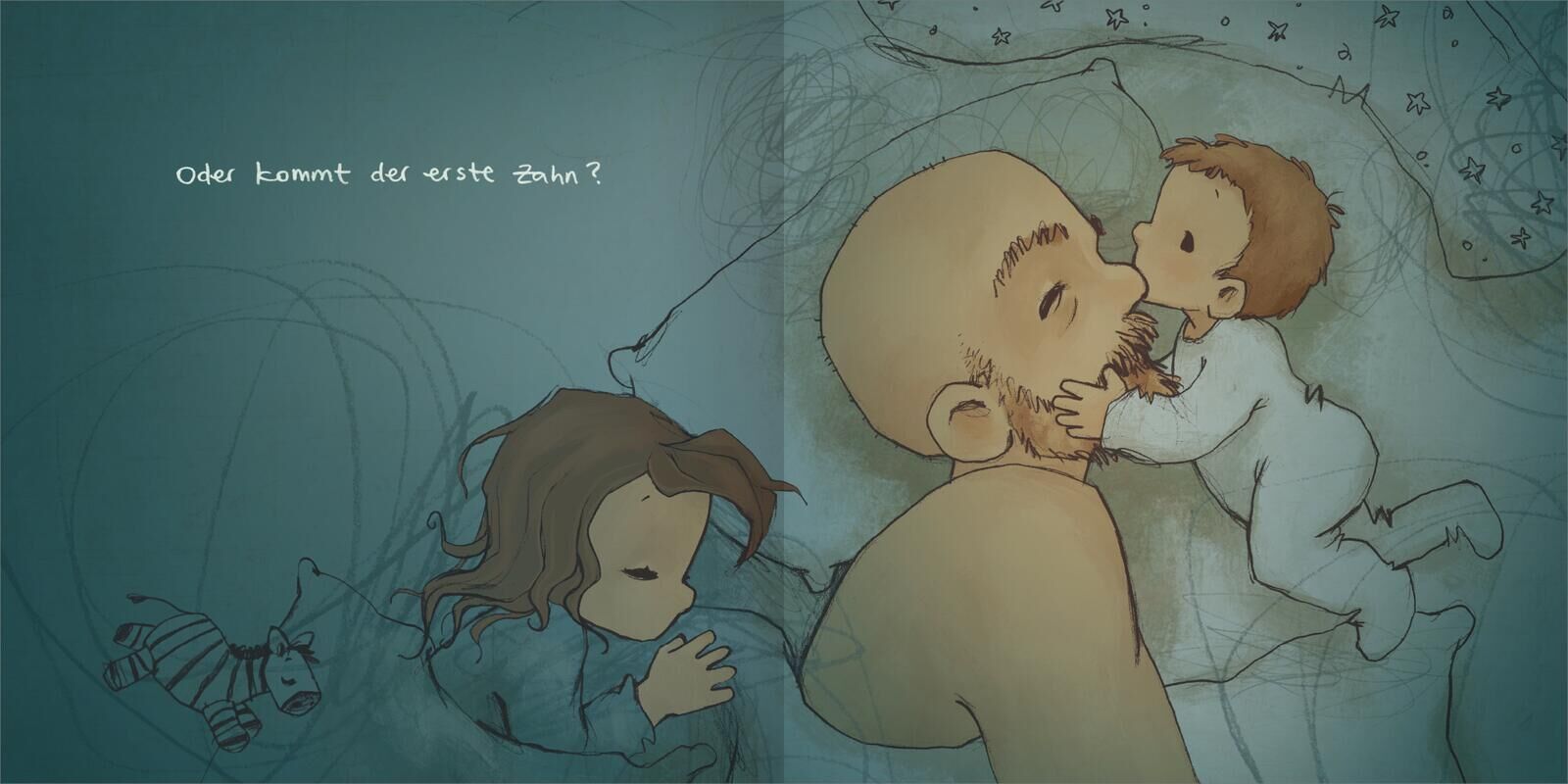 Kleines Geschenkbuch über schlaflose Nächte, das perfekt die Gefühlswelt von jungen Eltern einfängt. Ideales Mitbringsel für frischgebackene Eltern, von Joëlle Tourlonias liebevoll geschrieben und illustriert. Das Buch für müde Eltern und alle, die es werden ...