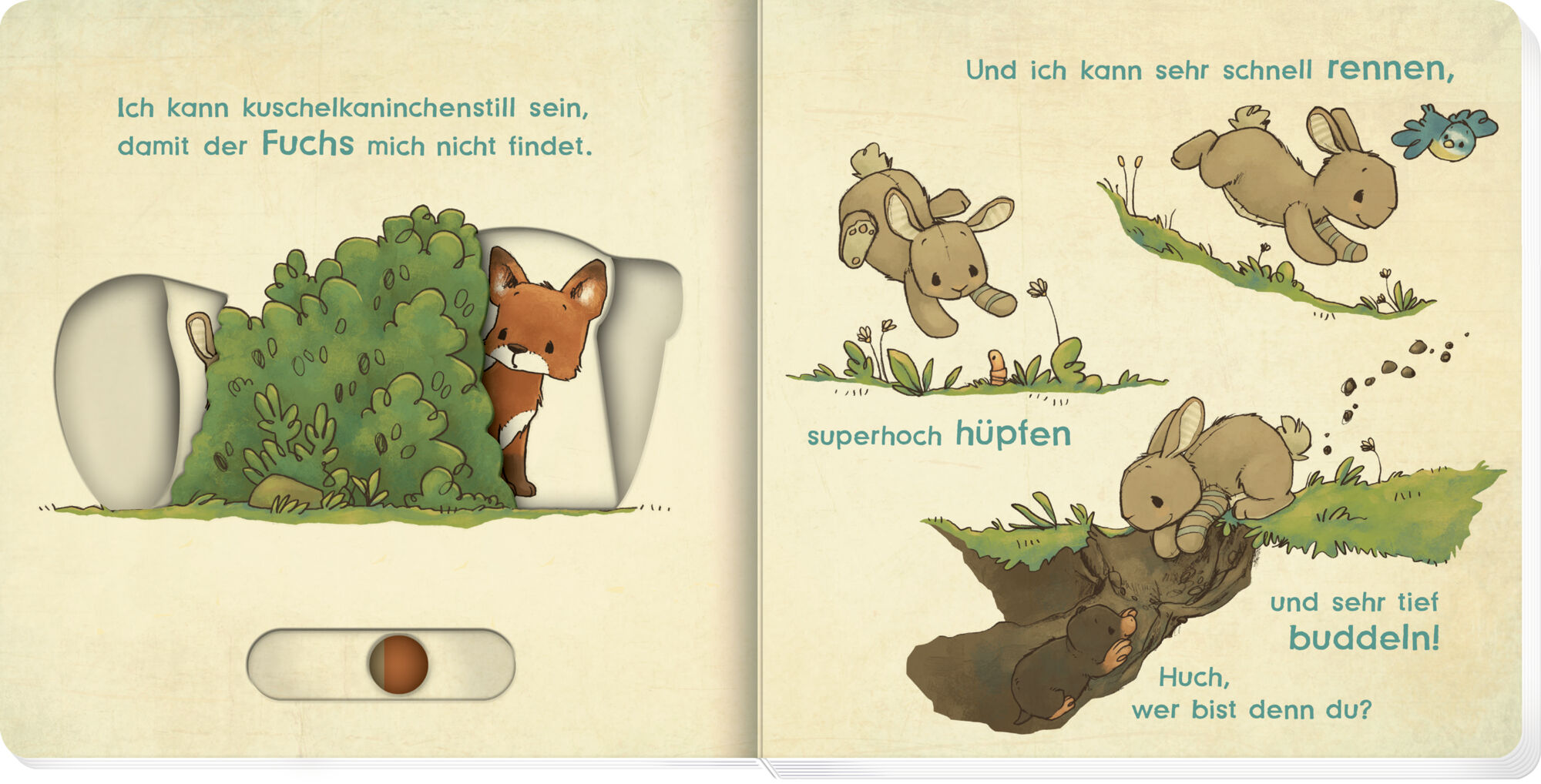 Ich bin das kleine Kuschelkaninchen, und ich freue mich sehr, dich kennenzulernen! Schau mal, ich kann schnell rennen, hoch hüpfen, mit dem Näschen wackeln und ich liebe Löwenzahn aber am allerliebsten hab ich dich." Dieses liebevoll gestaltete Pappbilderbuch...