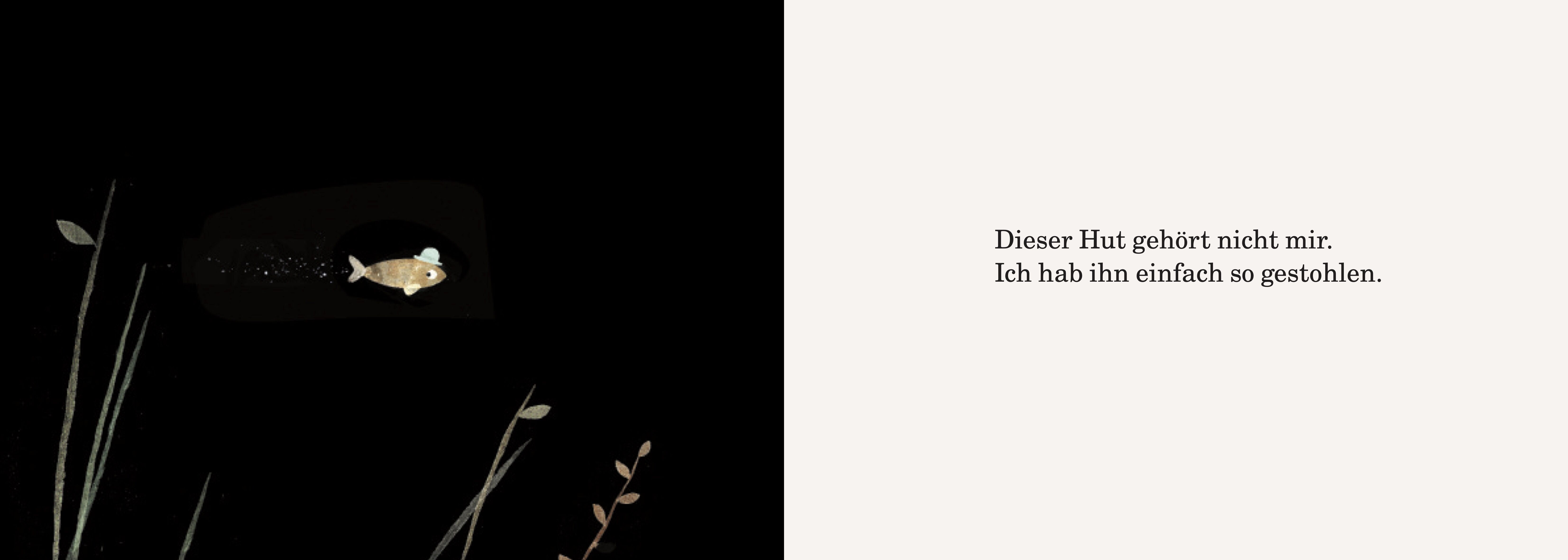 Ein kleiner, frecher Fisch stiehlt einem großen schlafenden Fisch den Hut. Und glaubt, dass er es nicht bemerkt. Aber der große Fisch erwacht und macht sich auf die Suche nach dem Hutdieb. Und am Ende schwimmt er genau dorthin, wo sich der kleine Fisch so sich...