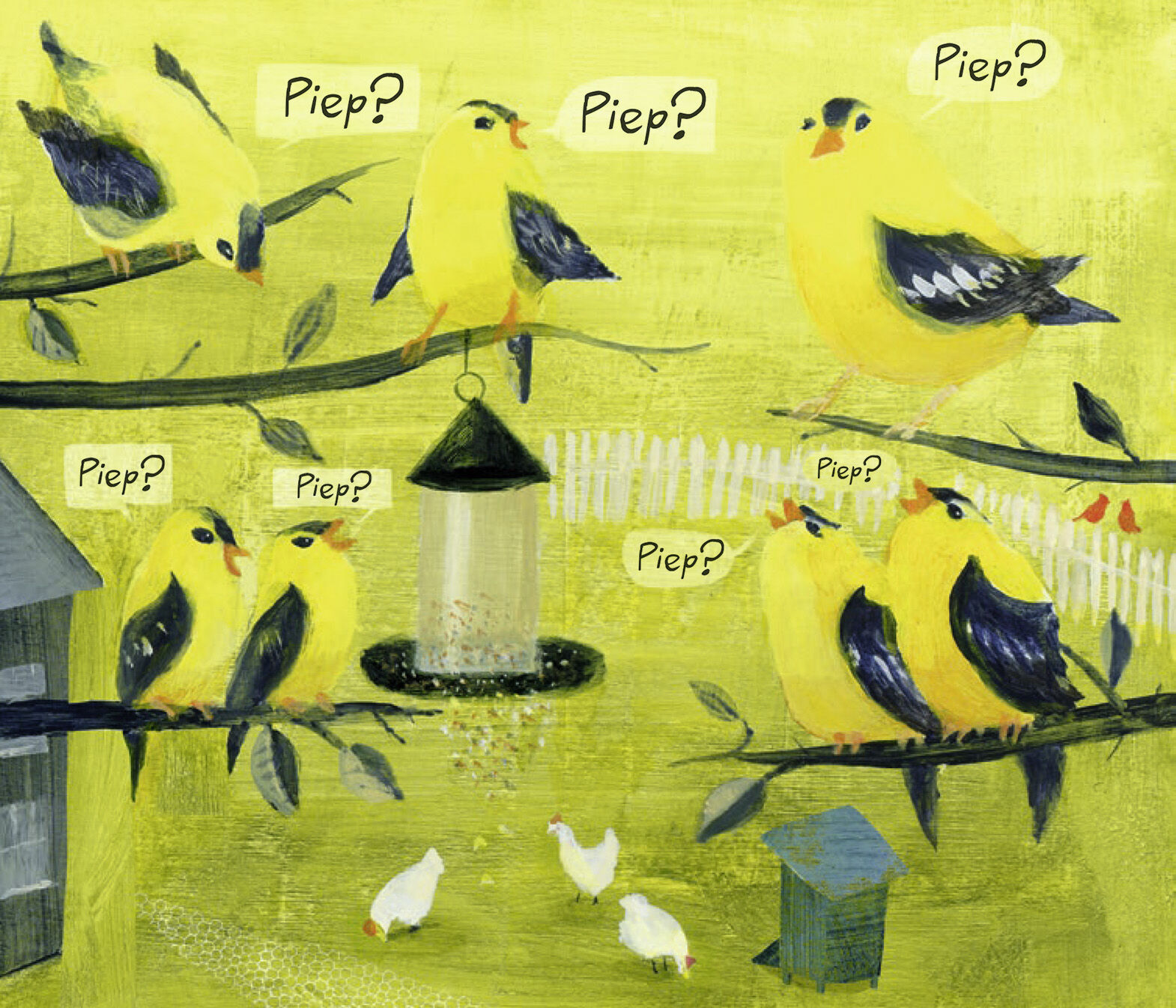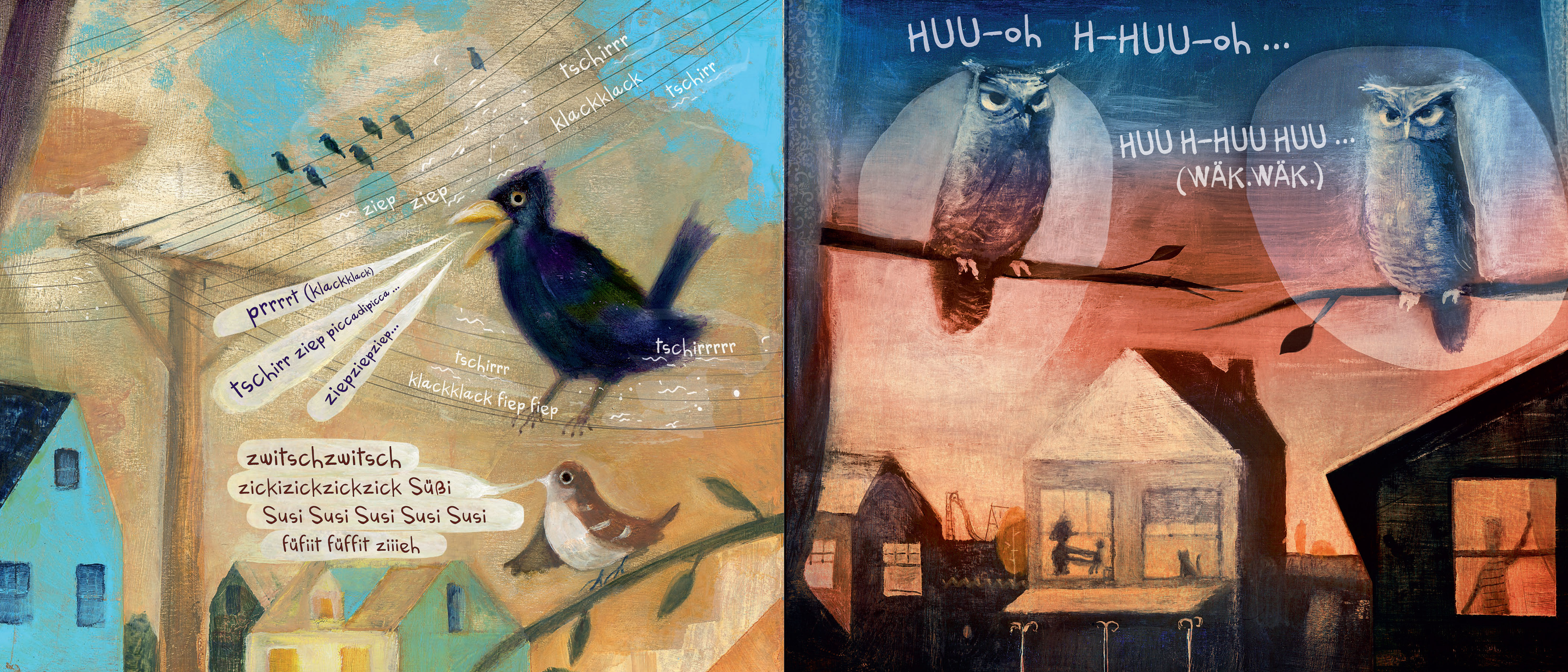 Ein ungewöhnliches Bilderbuch, durchgängig erzählt in Vogelstimmen. Zwitschern, pfeifen, krächzen, piepen, gurren: eine hinreißende Geschichte von Sonnenauf- bis Sonnenuntergang, erzählt in Vogellauten. Sobald der Tag erwacht, versammeln sich die Vögel zum Kon...