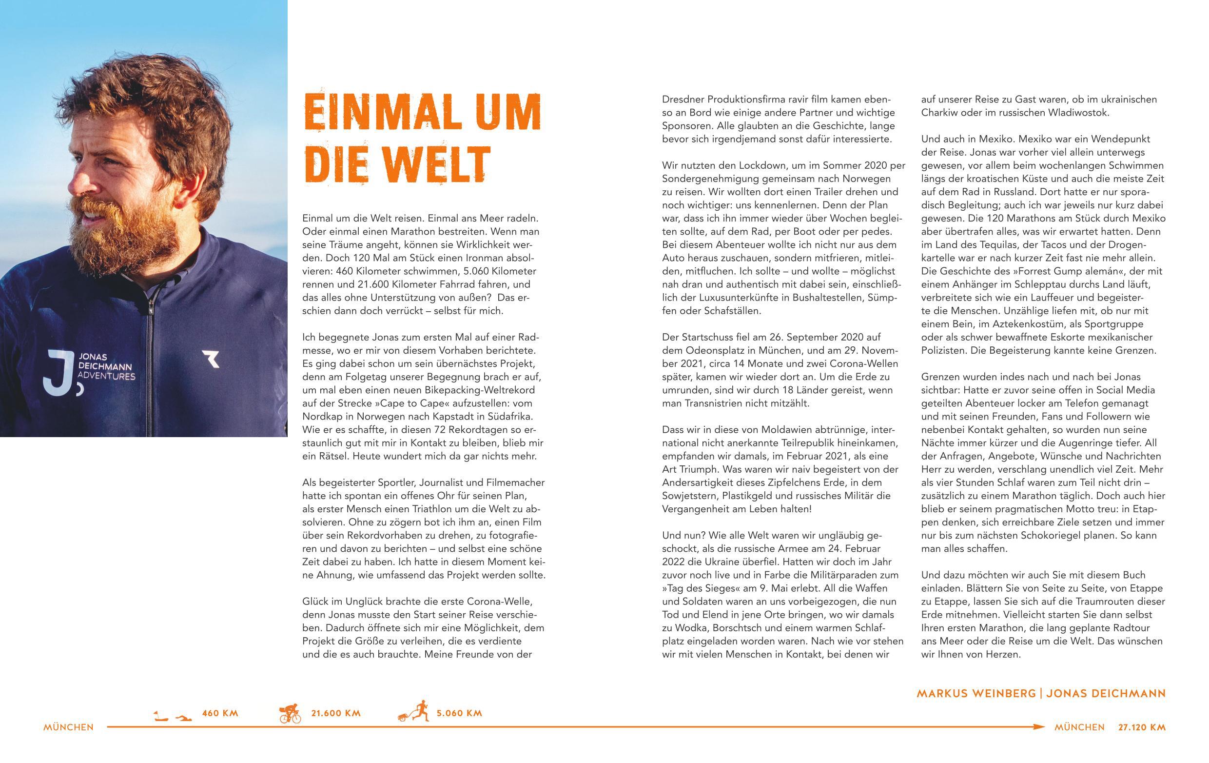 Der Bildband zum SPIEGEL-Bestseller: Die beeindruckendsten Bilder vom ersten Triathlon um die Welt Der Bildband zu der ungewöhnlichsten Weltumrundung Jonas Deichmann hat die Menschen mit seinem Triathlon um die Welt begeistert. Die Adria ist er hinuntergeschwo...
