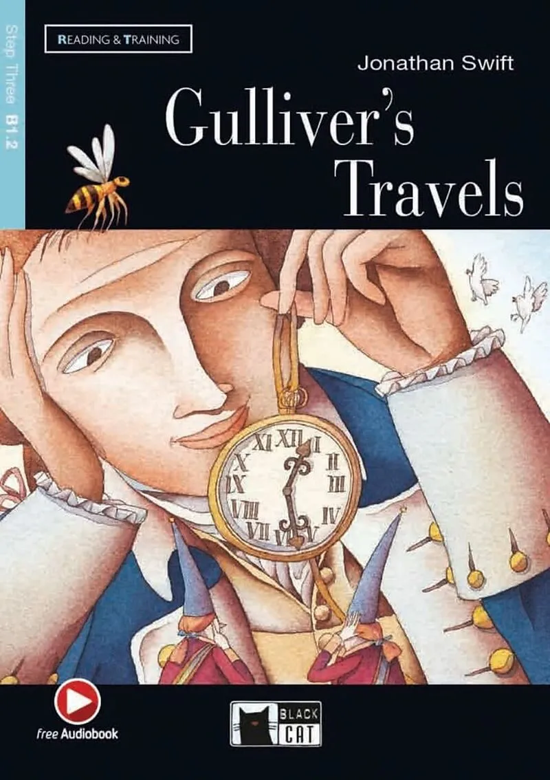 Lemuel Gulliver erzählt seine Abenteuer auf der Insel Lilliput, die von kleinen eitlen Personen bewohnt wird; in Brobdingnag, wo Riesen leben; in Laputa, Land der unnützen Wissenschaft; schließlich im Land der Houyhnhnms, wo Pferde Vernunft haben und Menschen ...