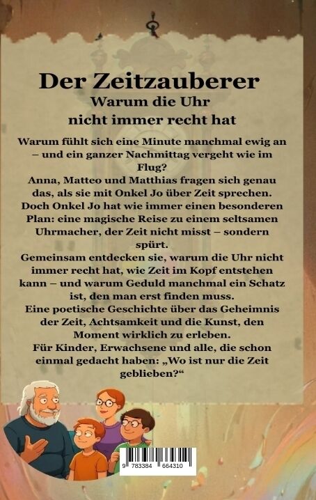 Warum vergeht die Zeit manchmal so langsam und dann wieder viel zu schnell? In dieser poetischen Geschichte nimmt Onkel Jo drei Kinder mit auf eine magische Reise durch das Geheimnis der Zeit. Sie entdecken, warum Geduld kein Warten ist, wie man achtsamer lebt...