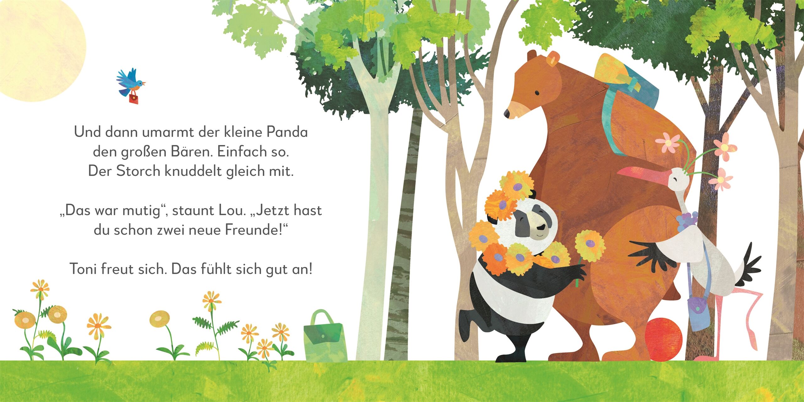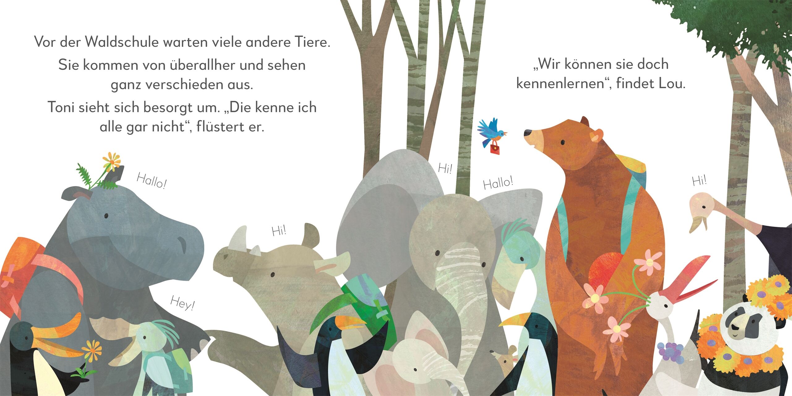 Mutig sein lohnt sich! Bär Toni und seine Vogelfreundin Lou gehen zum ersten Mal in die Waldschule. Toni ist aufgeregt: Er kennt die anderen Tiere ja gar nicht Lou ermutigt ihn, mit den anderen zu spielen. Nun traut sich Toni und merkt, wie schön es ist, sich...