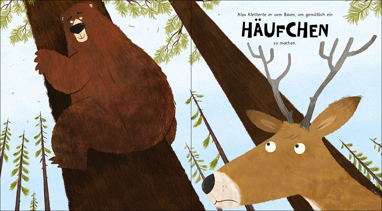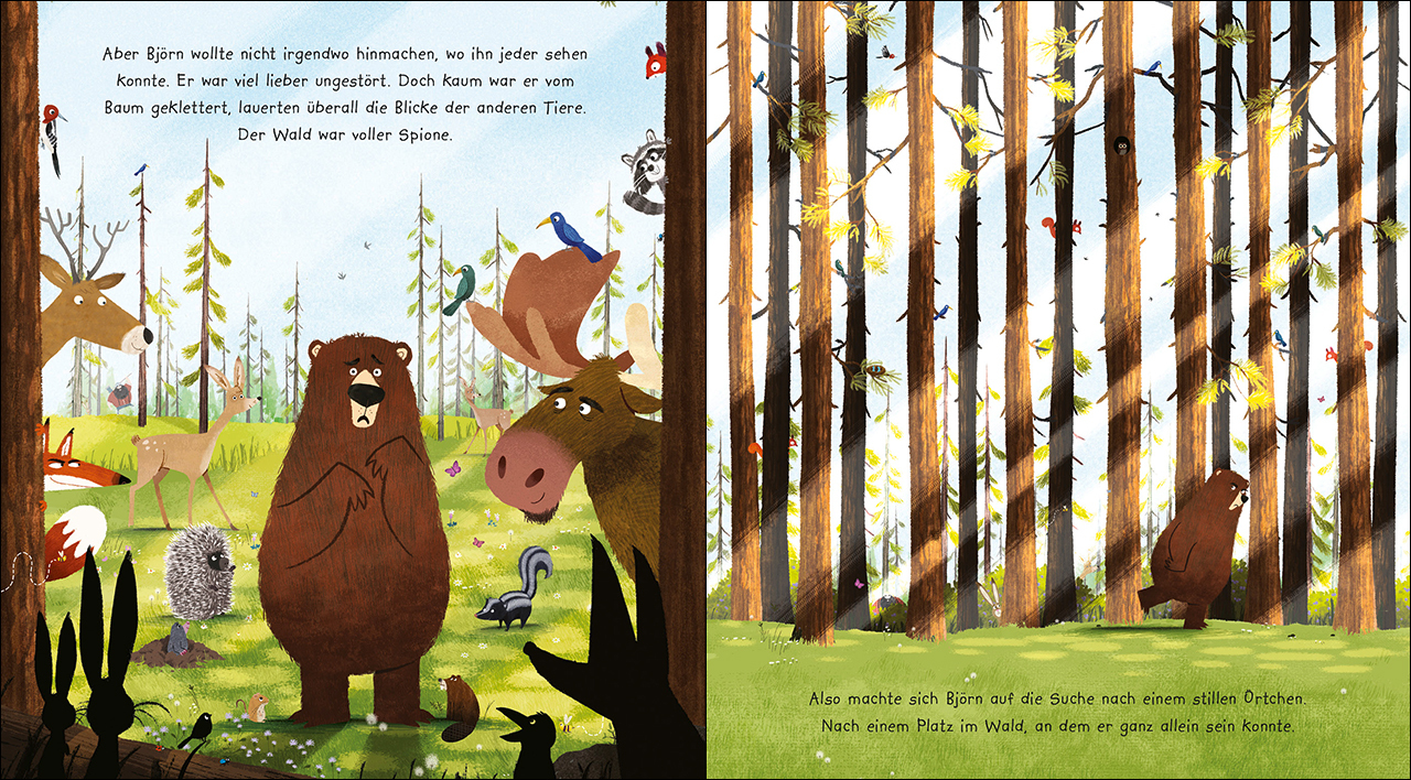Bär muss mal Ein stilles Örtchen für ein großes Geschäft Nach einem guten Schlaf voll schöner Träume, wacht Bär Björn auf und möchte sich als Erstes erleichtern. Das Problem: Der Wald ist voller Spione und Björn ziemlich schüchtern! Auf der Suche nach einem ru...