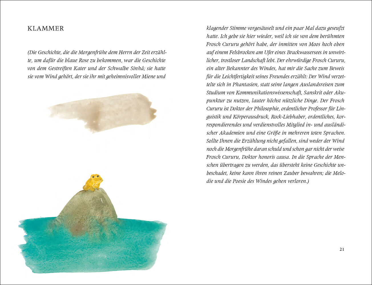 Um eine blaue Rose zu gewinnen, erzählt die Morgenfrühe dem Herrn der Zeit die Liebesgeschichte vom Gestreiften Kater und der Schwalbe Sinhá: Der Gestreifte Kater, im ganzen Park gefürchtet und verachtet, weil er böse sei und hässlich, erlebt einen zweiten Fr...