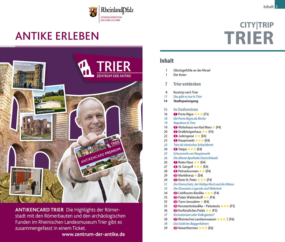 Die einstige Römerstadt Trier ist nicht allein wegen ihres Wahrzeichens, der Porta Nigra, weit über die Moselregion hinaus bekannt. Zahlreiche UNESCO-Welterbestätten wie Amphitheater und Kaiserthermen machen Geschichte anschaulich. Auch das Andenken an den Tr...