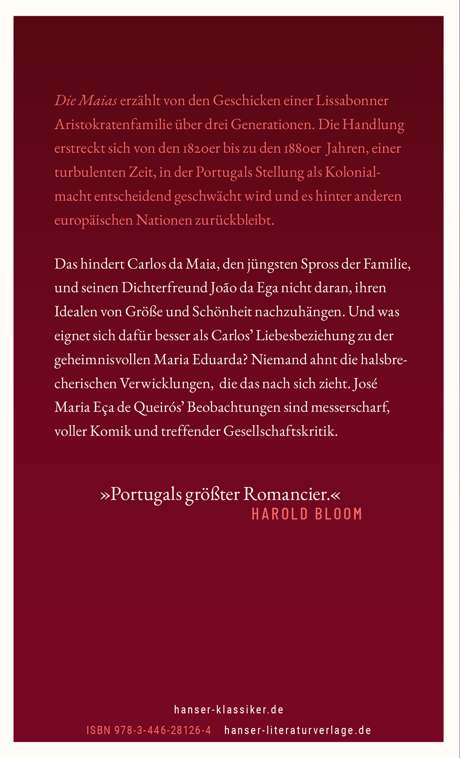 Die portugiesischen Buddenbrooks als spektakuläre literarische Wiederentdeckung. Scharf beobachtet, voller Komik, Menschenkenntnis und Gesellschaftskritik Lissabon um 1870. Carlos de Maia stammt aus einer der vornehmsten Familien des Landes und hat alles: Er s...