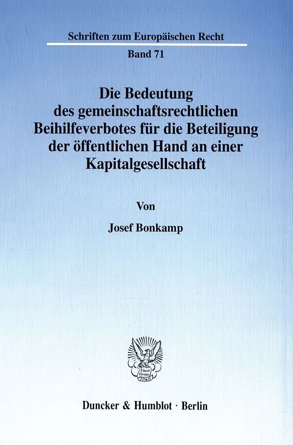 Im letzten Jahrzehnt hat die Kommission der Europäischen Gemeinschaften die Kontrolle staatlicher Beihilfen erheblich ausgeweitet. Dabei stehen auch Kapitalbeteiligungen der öffentlichen Hand an Unternehmen immer wieder im Mittelpunkt des Interesses, wie aus d...