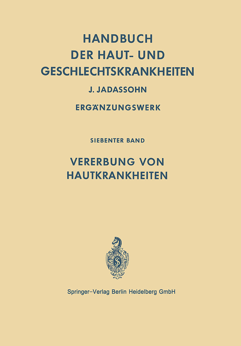 Im Handbuch der Haut- und Geschlechtskrankheiten von J. JADASSOHN wurden die Erbkrankheiten der Haut von H. W. SIEMENS abgehandelt. Seit 1929 ist die Literatur auf diesem Gebiet gewaltig angewachsen, jedoch im deutschen Schrifttum nie mehr zusammenfassend darg...