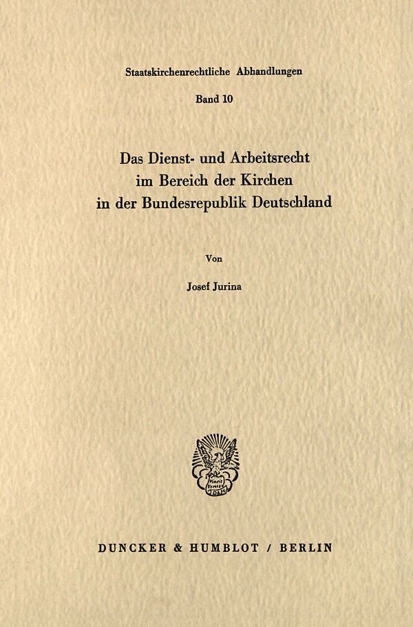 Das Dienst- und Arbeitsrecht im Bereich der Kirchen in der Bundesrepublik Deutschland.