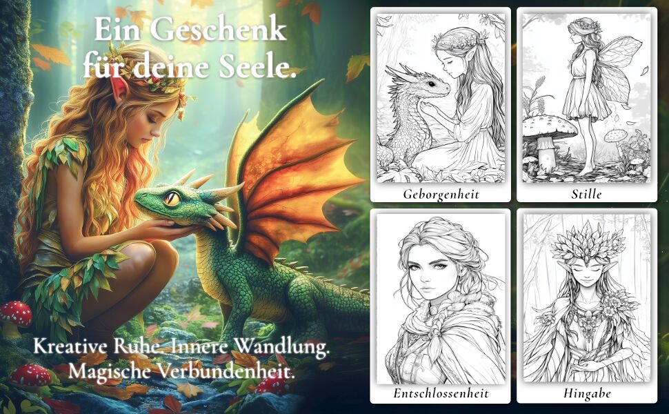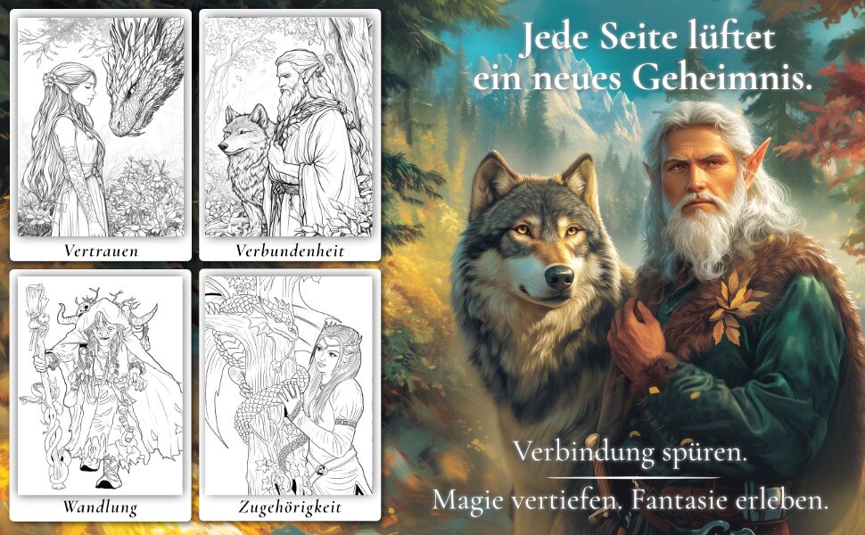 Magischer Malspaß im Zauberwald Fantasie zum Ausmalen Willkommen im geheimnisvollen Zauberwald! Dieses Fantasy-Malbuch entführt kreative Erwachsene in eine märchenhafte Welt voller Fabelwesen und Magie. 50 liebevoll handgezeichnete Ausmalmotive zeigen Elfen, F...
