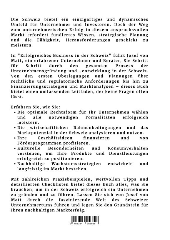 Die Schweiz bietet ein einzigartiges und dynamisches Umfeld für Unternehmer und Investoren. Doch der Weg zum unternehmerischen Erfolg in diesem anspruchsvollen Markt erfordert fundiertes Wissen, strategische Planung und die Fähigkeit, Herausforderungen geschic...