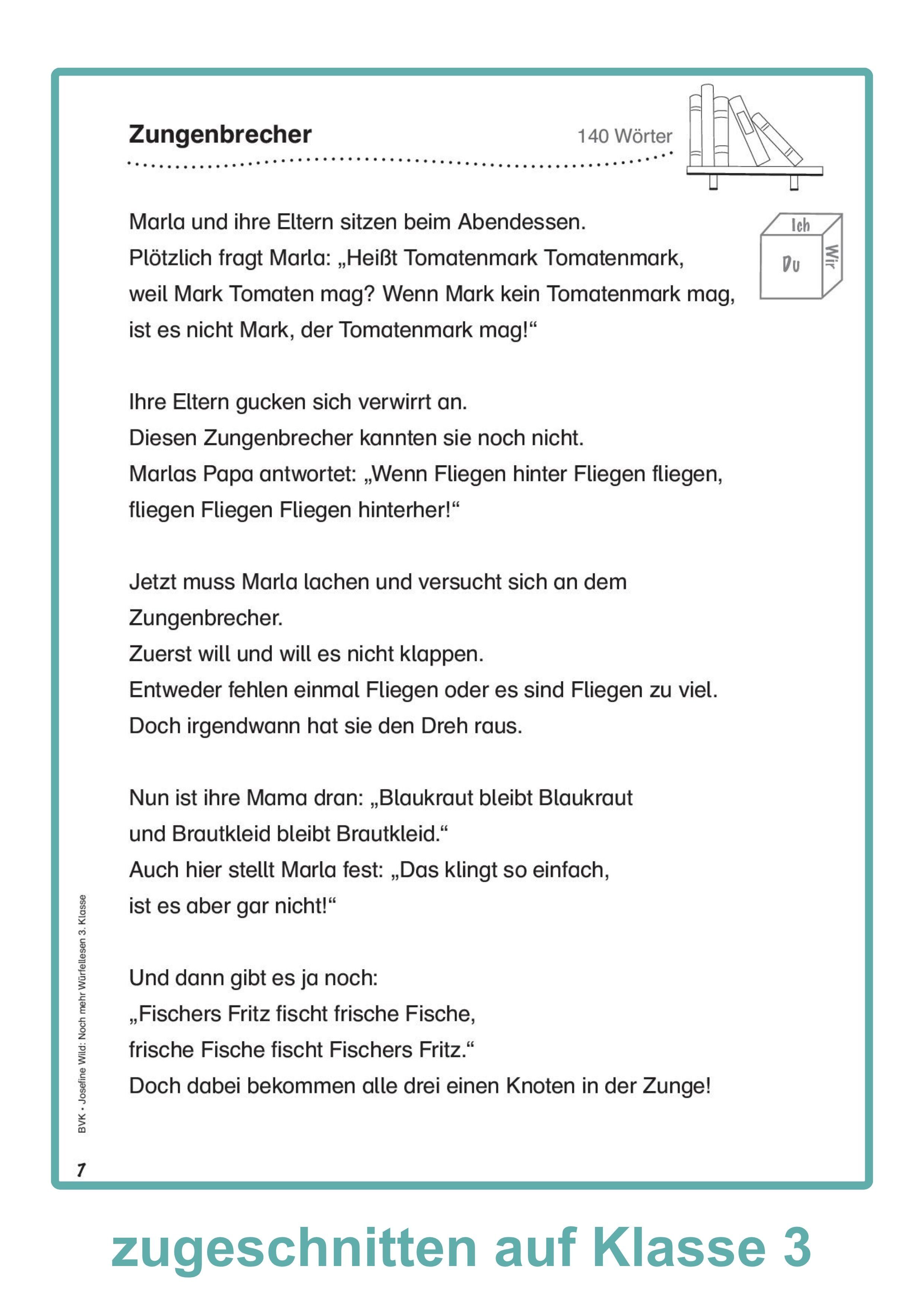 Jetzt ist Lesezeit! Neben Tandemlesen und Vorlesetheater ist auch Würfellesen eine beliebte Lautlesemethode. Die Geschichten aus Noch mehr Würfellesen 3. Klasse können Sie ohne viel Vorbereitung direkt in der Praxis einsetzen, zum Beispiel während der 20 Minut...