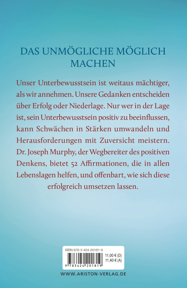 Unser Unterbewusstsein ist weitaus mächtiger, als wir annehmen. Unsere Gedanken entscheiden über Erfolg oder Niederlage. Nur wer in der Lage ist, sein Unterbewusstsein positiv zu beeinflussen, kann Schwächen in Stärken umwandeln und Herausforderungen mit Zuver...