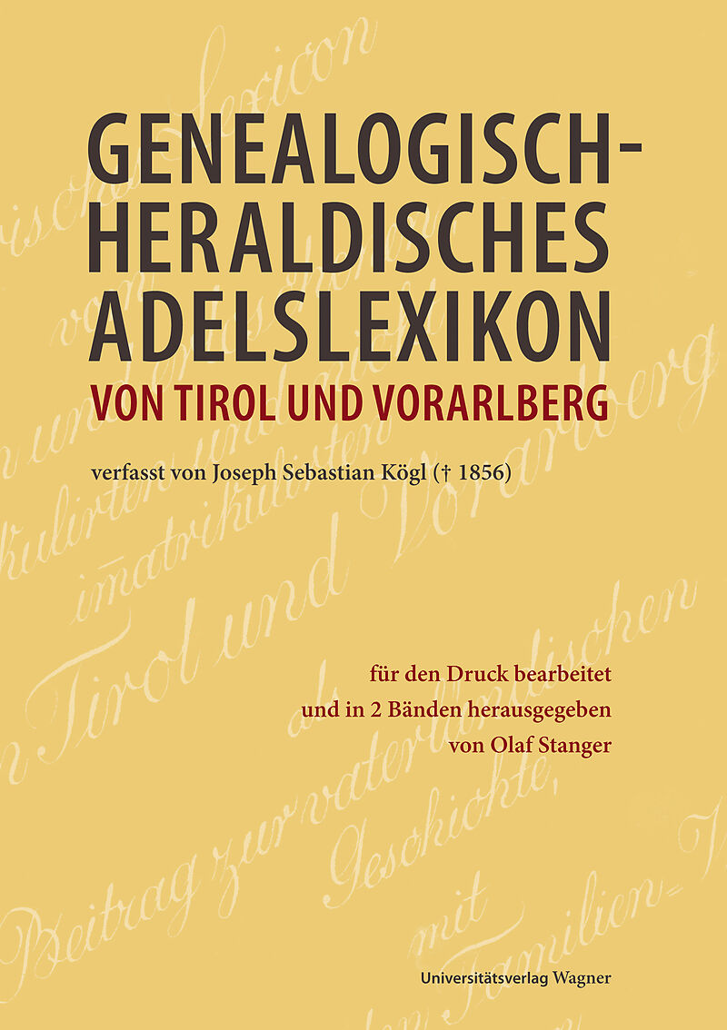 Dieses zweibändige Werk enthält auf über 1200 Seiten die umfassendste Auflistung von Familien des Tiroler und Vorarlberger Adels, die erhalten ist. Sie entstand um die Mitte des 19. Jahrhunderts als das Lebenswerk von Joseph Sebastian Kögl (1803-1856), eines T...