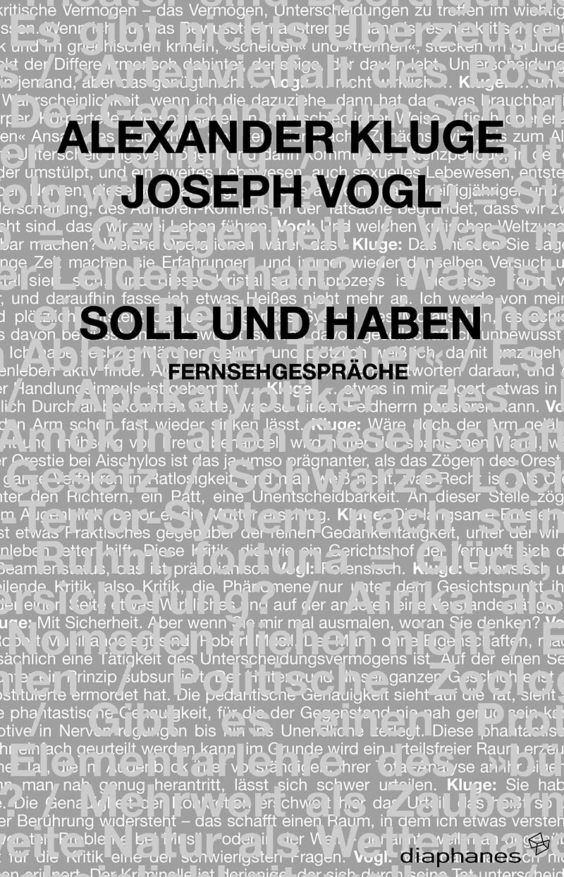 Soll und Haben versammelt erstmals eine Auswahl dieser Gespräche in Buchform. Das thematische Spektrum reicht quer durch die Zeiten und Kulturen. Ob Vogl jedoch über Amoklauf spricht, über Kapitalismus in Ostindien, globalisierte Gefühle, politische Tiere oder den geheimen Zusammenhang von Terror und Macht, Dichtung und Bürokratie, Kluges insistierende Präsenz bringt den Befragten nicht nur immer dazu, mehr und anderes zu sagen als das vorher Gewusste, das öffentlich bereits Niedergelegte. Und immer ergeben sich auch schlaglichtartige Erhellungen der aktuellen Verhältnisse: »Aus der Ferne kommt unser Nächstes zurück«.