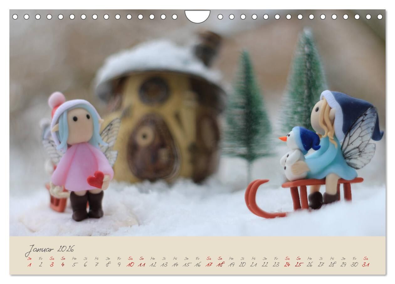 Ein weiteres Jahr begleiten mit Liebe handgefertige Elfen durch das ganze Jahr. Jeden Monat eine andere Szene aus dem Reich der Elfen. Die Häuschen der Monate Januar, April, Mai (Teich), Juli (Zaun und Vogeltränke) und August sind von der Künstlerin Antje Rose...