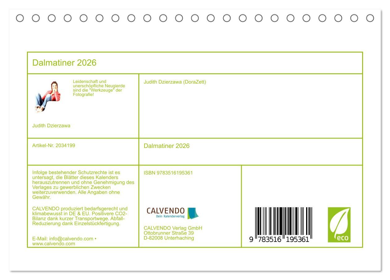 Dalmatiner 2026 (Tischkalender 2026 DIN A5 quer), CALVENDO Monatskalender