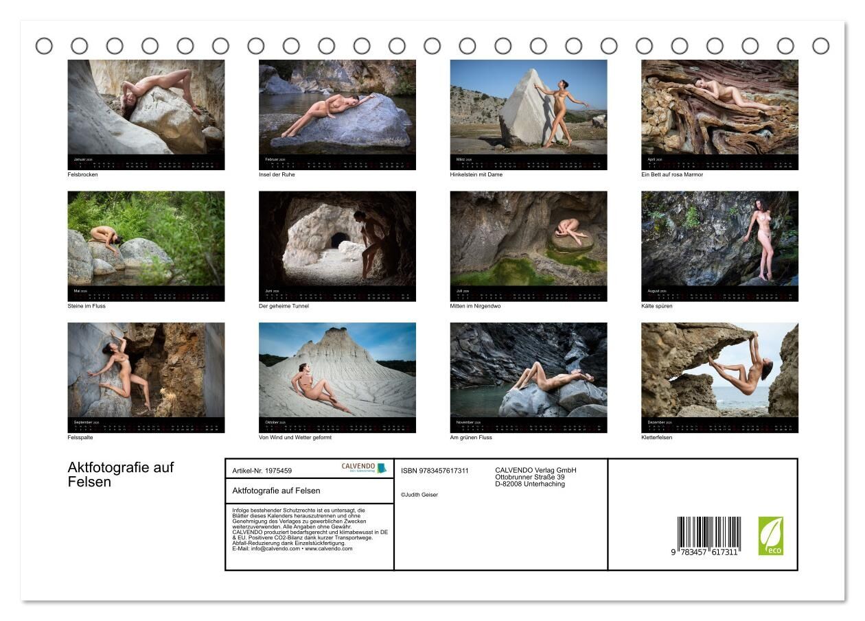 Aktfotografie auf Felsen (Tischkalender 2026 DIN A5 quer), CALVENDO Monatskalender
