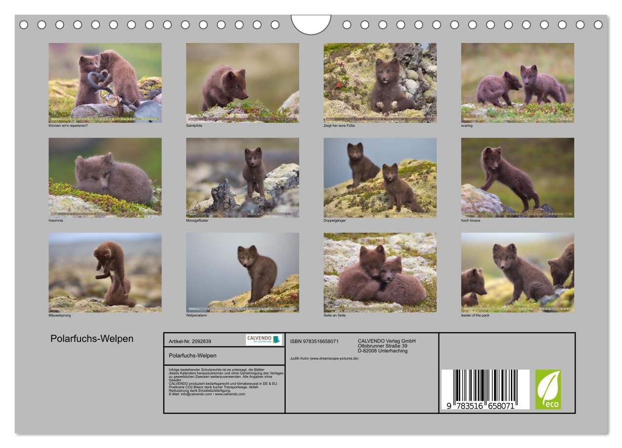 Dieser Kalender begleitet junge Polarfüchse durch ihre ersten Sommermonate in der rauen Landschaft Islands. Zwischen Moos und Lava, Licht und Wind zeigen die Tiere ihre verspielte, wachsame und zarte Seite. Die Bilder erzählen von einem Leben fernab menschlich...