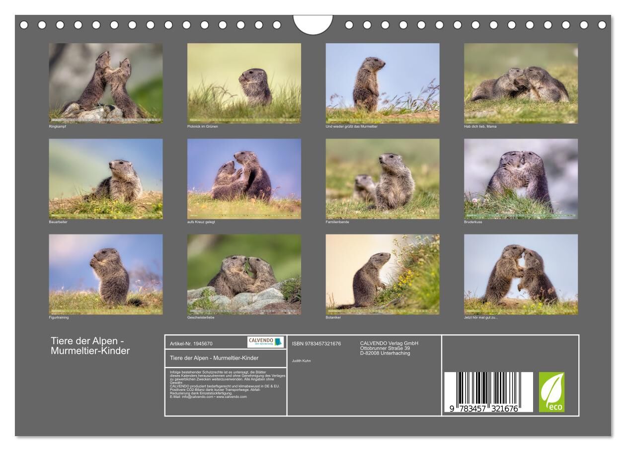 Entdecken Sie meinen bezaubernden Kalender "Tiere der Alpen - Murmeltier-Kinder"! Jeder Monat zeigt ein liebevoll eingefangenes Bild von niedlichen, verspielten Murmeltieren in ihrer natürlichen Umgebung. Diese kleinen Charmeure bringen Freude und ein Lächeln ...