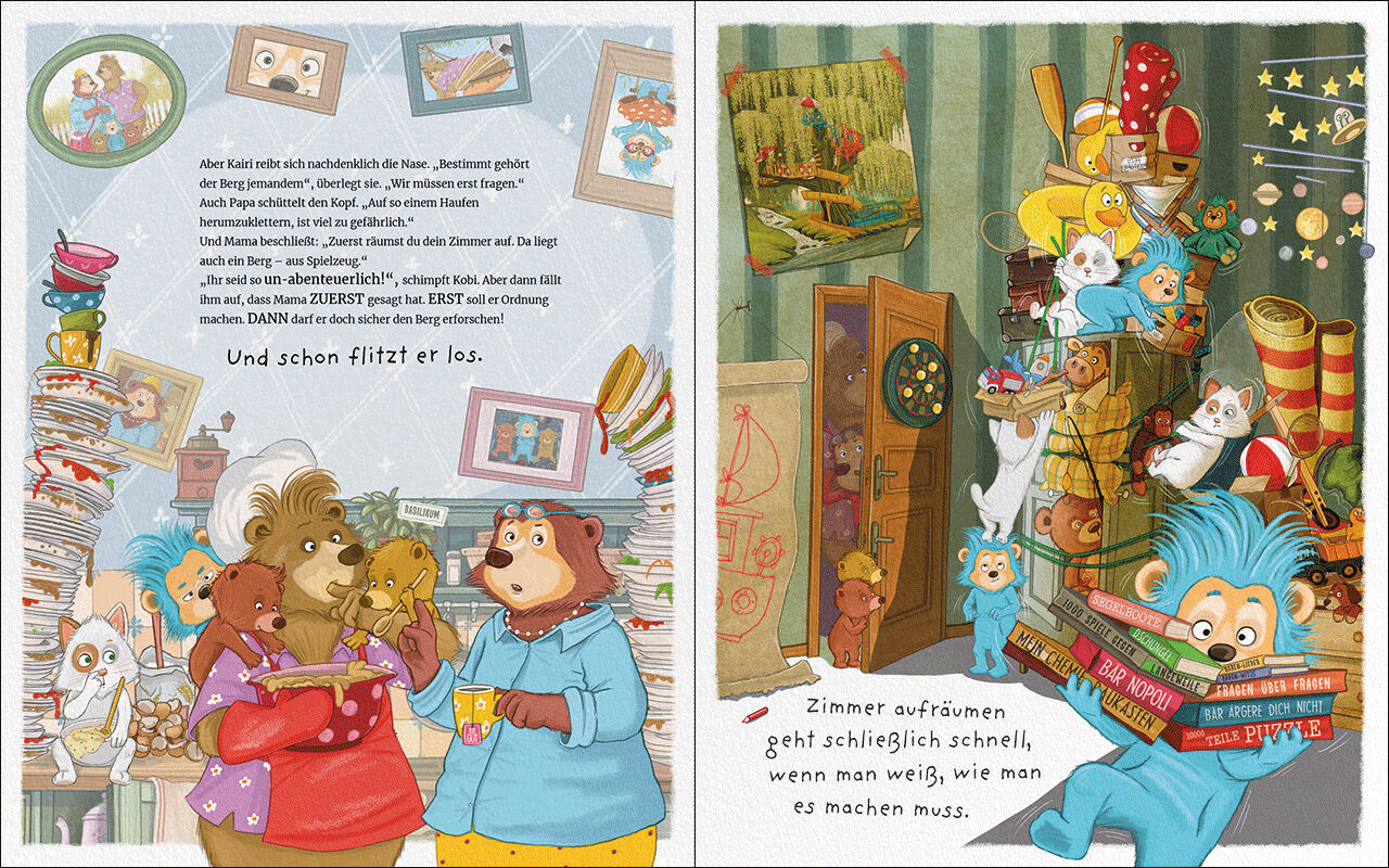 Loewe-Bücher: garantiert ohne KI ICH + DU = DOPPELT TOLL! Er ist blau. Er steckt voller Ideen. Und er macht die Welt so, wie Kinder sie sehen. Das ist Kobi Kopfübär! Was ist das für ein Haufen Krimskrams, der sich da im Wilden Weg auftürmt? Entdeckungsfreudig ...