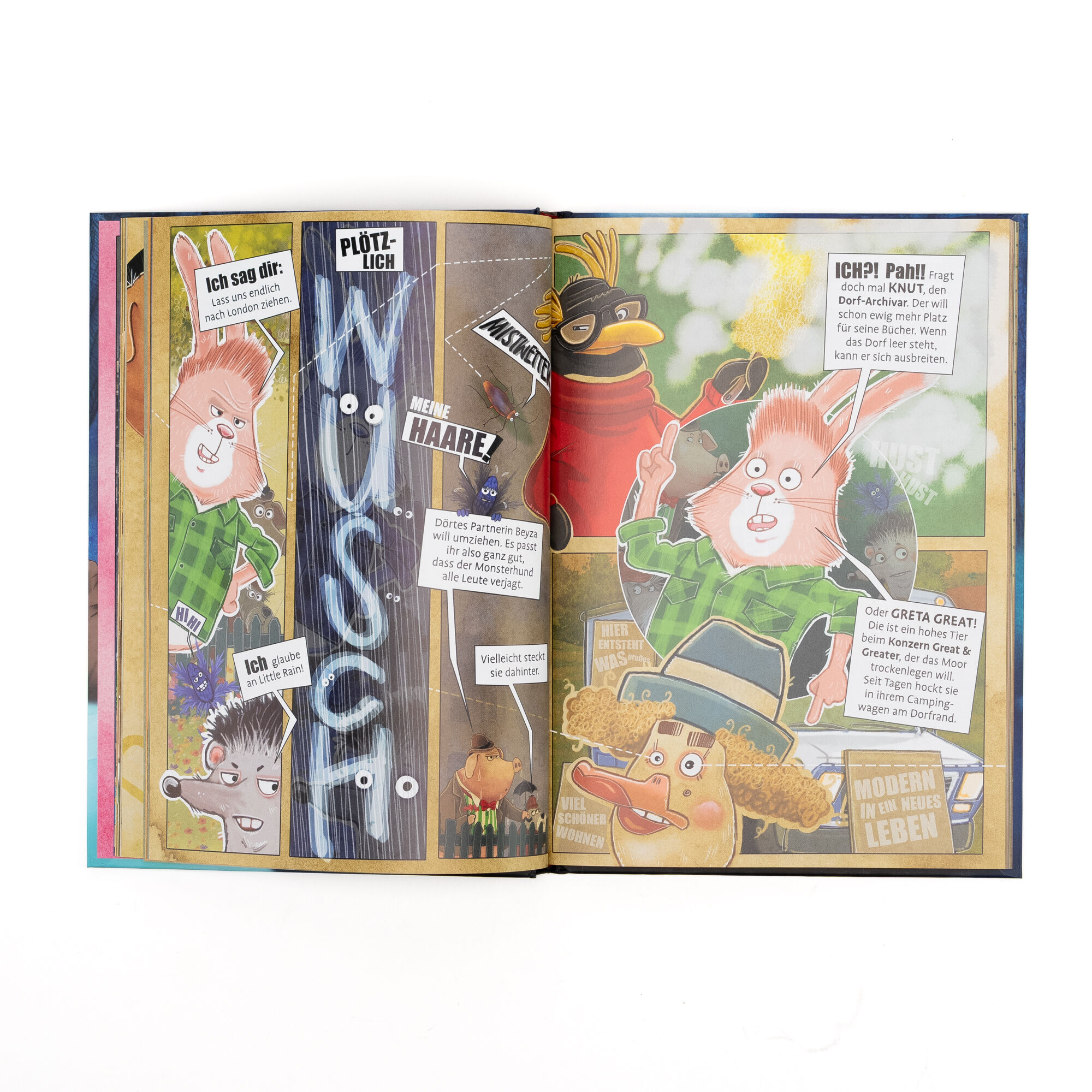 Miträtseln, Mitlachen, Mitfiebern Es geht weiter mit der tierisch spannenden Comicreihe Ein Monsterhund verbreitet im Dorf Little Rain in der Nähe von Crazy London Angst und Schrecken. Besonders scheint er es auf das Rain Cottage von Lady Agatha abgesehen zu ...