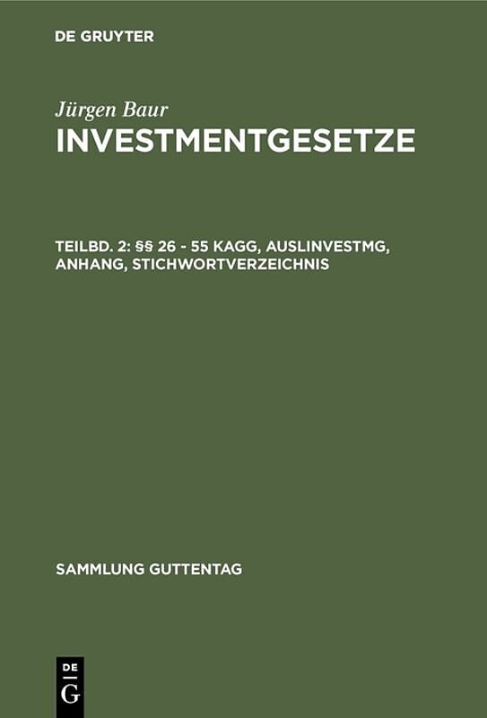 Keine ausführliche Beschreibung für " 26 - 55 KAGG, AuslInvestmG, Anhang, Stichwortverzeichnis" verfügbar. Frontmatter -- Inhaltsübersicht -- Teil 2. Gesetz über Kapitalanlagegesellschaften (KAGG) -- Fünfter Abschnitt. Besondere Vorschriften für Grun...