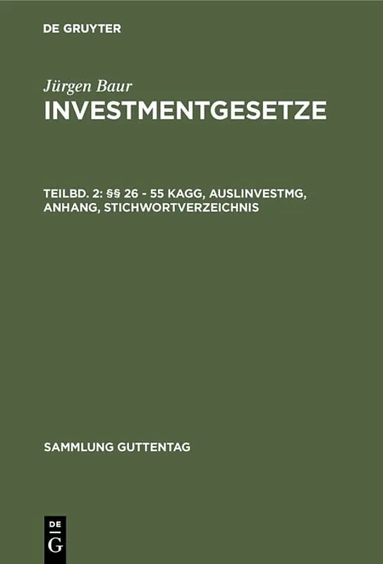Keine ausführliche Beschreibung für " 26 - 55 KAGG, AuslInvestmG, Anhang, Stichwortverzeichnis" verfügbar. Frontmatter -- Inhaltsübersicht -- Teil 2. Gesetz über Kapitalanlagegesellschaften (KAGG) -- Fünfter Abschnitt. Besondere Vorschriften für Grun...