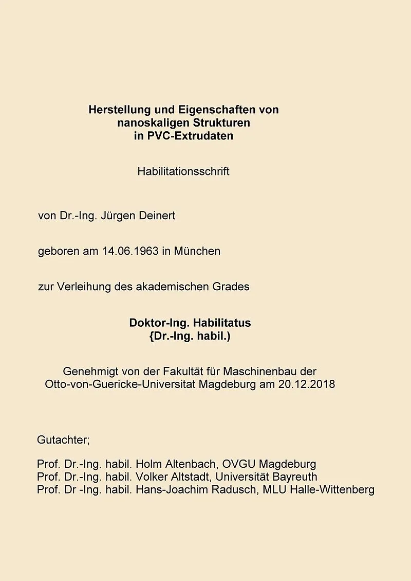 Herstellung und Eigenschaften von nanoskaligen Strukturen in PVC- EXtrudaten Autorentext Jürgen Deinert wurde am 14.06.1963 in München geboren. In Münster/Hessen besuchte er die Grundschule und die Realschule, anschließend das Gymnasium in Dieburg, wo er das A...