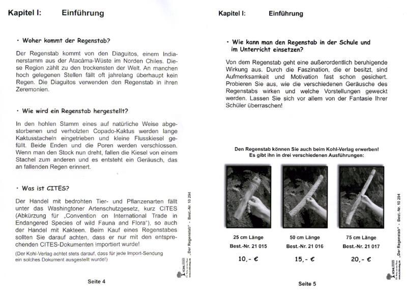 Dieses Begleitbuch gibt Auskunft über Herkunft, Herstellung und Verwendung des faszinierenden Regenstabes. Sie erfahren überaus nützliche praktische Tipps zur Verwendung des Instrumentes im Stille- und Konzentrationsunterricht. Darüberhinaus ist die Fantasiere...
