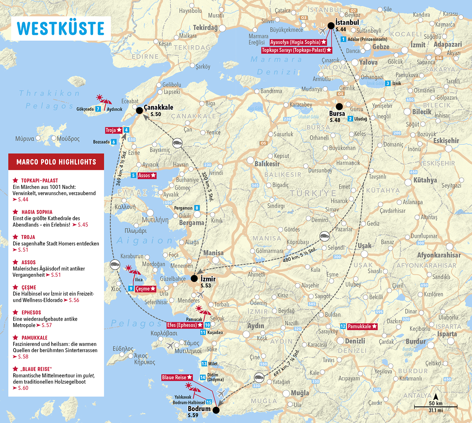 Plane deinen Traumurlaub mit dem MARCO POLO Reiseführer Türkei Die Türkei ist so faszinierend schön wie wechselhaft. Wo Orient und Okzident aufeinandertreffen, findest du hochmoderne Metropolen und traditionelle Dörfchen, kilometerlange Küsten und mächtige Ge...