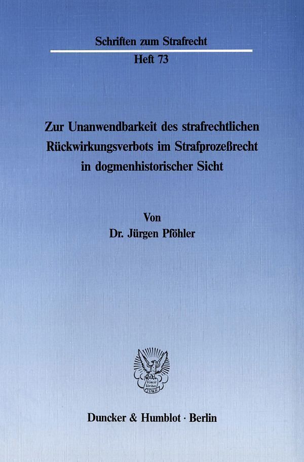 Zur Unanwendbarkeit des strafrechtlichen Rückwirkungsverbots im Strafprozeßrecht in dogmenhistorischer Sicht.