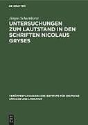 Untersuchungen zum Lautstand in den Schriften Nicolaus Gryses