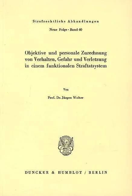 Die »Strafrechtlichen Abhandlungen - Neue Folge« wurden 1957 von Eberhard Schmidhäuser in Zusammenarbeit mit den deutschen Strafrechtslehrern in der Nachfolge der von Hans Bennecke begründeten »Strafrechtlichen Abhandlungen« (1896 bis 1942) eröffnet. Ihr Ziel ...