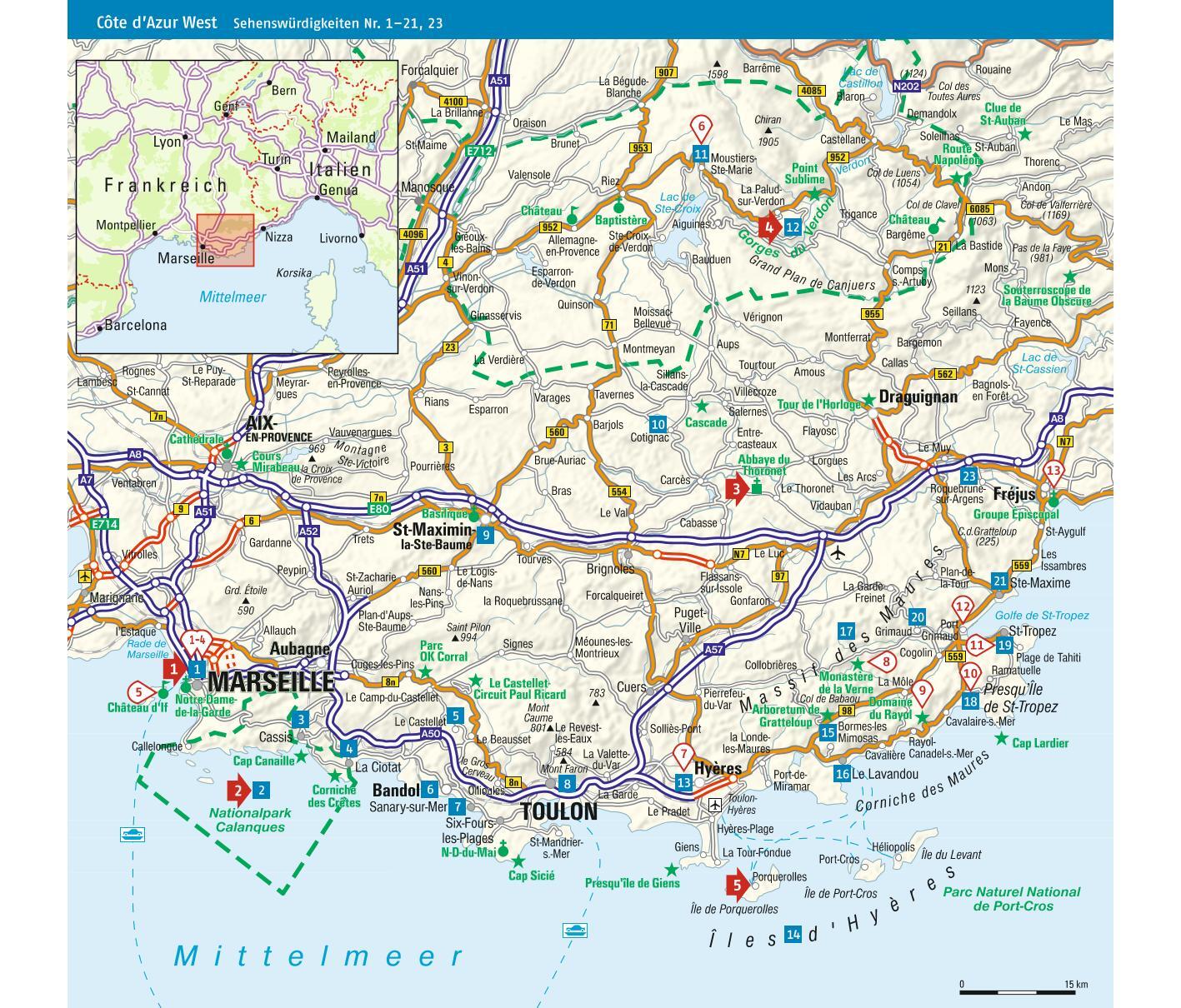 Palmenstrände, Luxusyachten, Filmstars gibt es an der Côte d'Azur. Legendär sind die mondänen Küstenstädte St-Tropez, Monte Carlo und Cannes. Aber wer glaubt, das sei alles, täuscht sich: Entlang französischen Mittelmeerküste warten hinter jeder Kurve neue Pe...