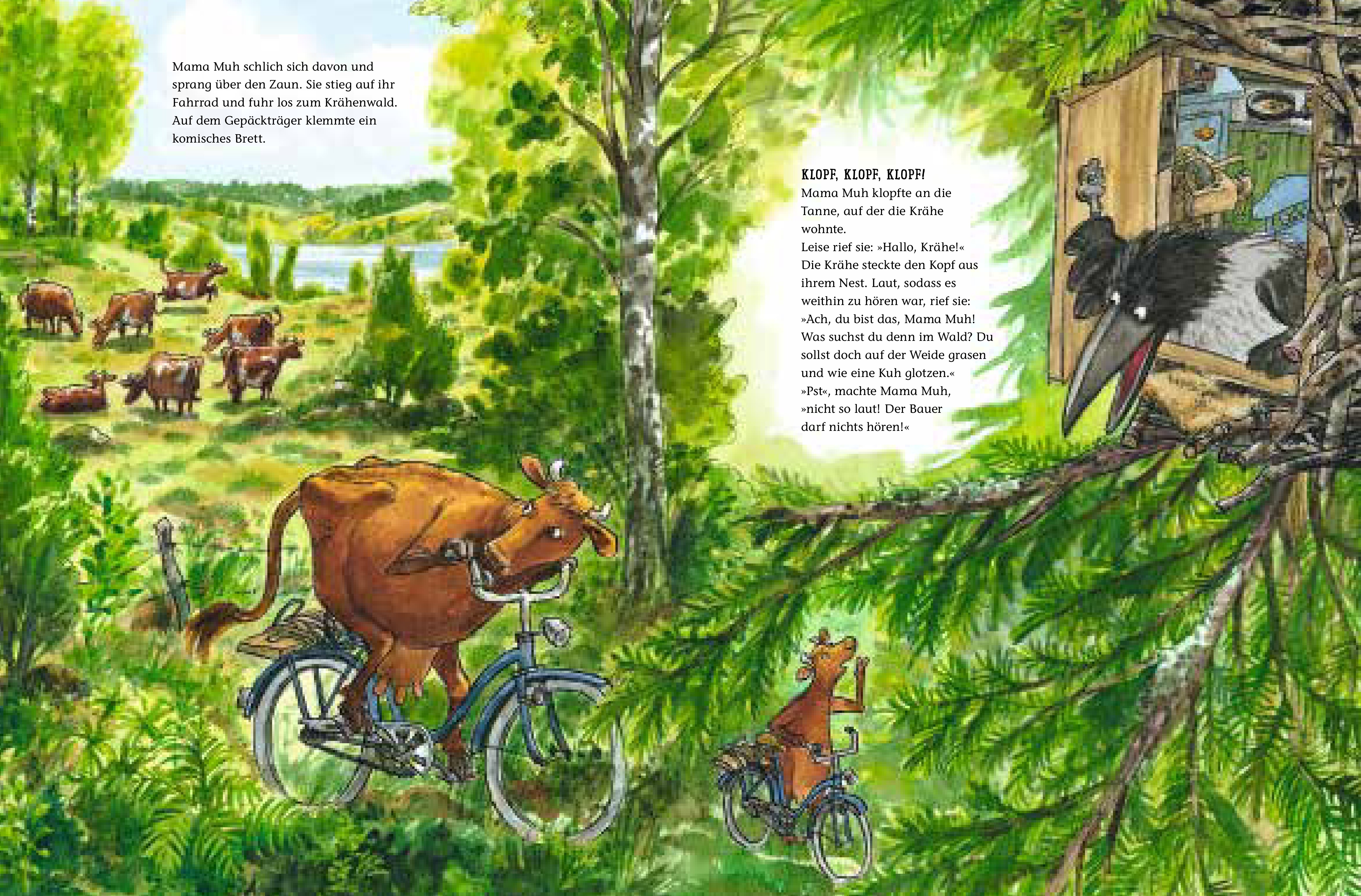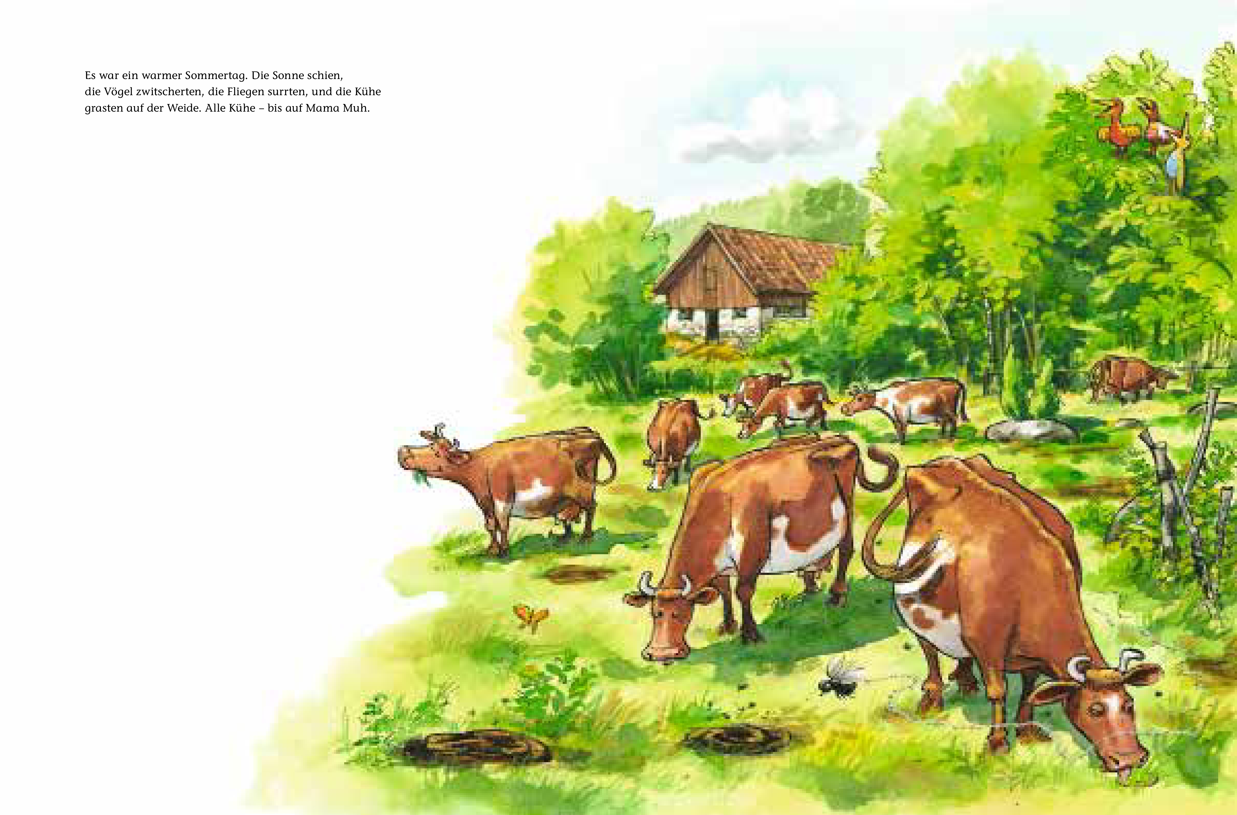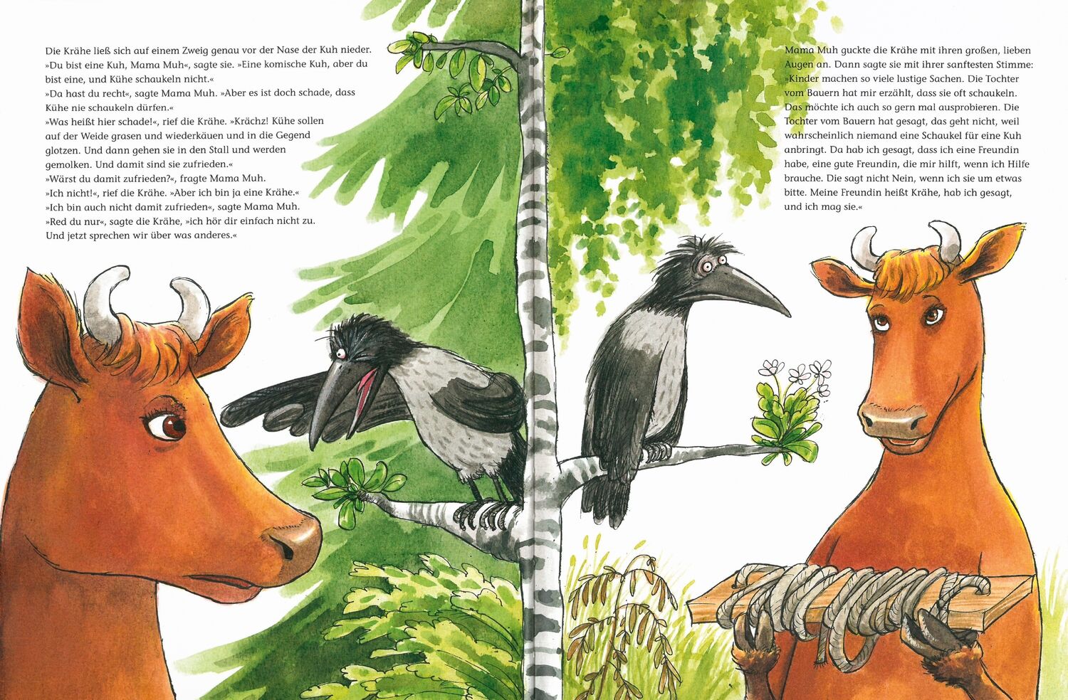 In "Mama Muh schaukelt" bricht die liebenswerte und unkonventionelle Kuh Mama Muh aus dem Alltagstrott aus und zeigt, dass sie mehr als nur Gras kauen und in die Gegend schauen möchte. Sie träumt davon, zu schaukeln und den Wind um die Ohren pfeifen zu fühlen...