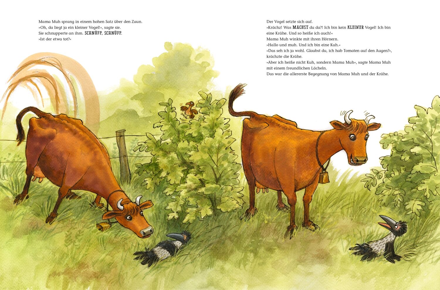 In "Mama Muh und Krähe werden Freunde" von Jujja Wieslander erfahren die Leser, wie die ungleiche Freundschaft zwischen der neugierigen und abenteuerlustigen Kuh Mama Muh und der skeptischen, aber cleveren Krähe ihren Anfang nimmt. Der Frühling ist da, und Ma...