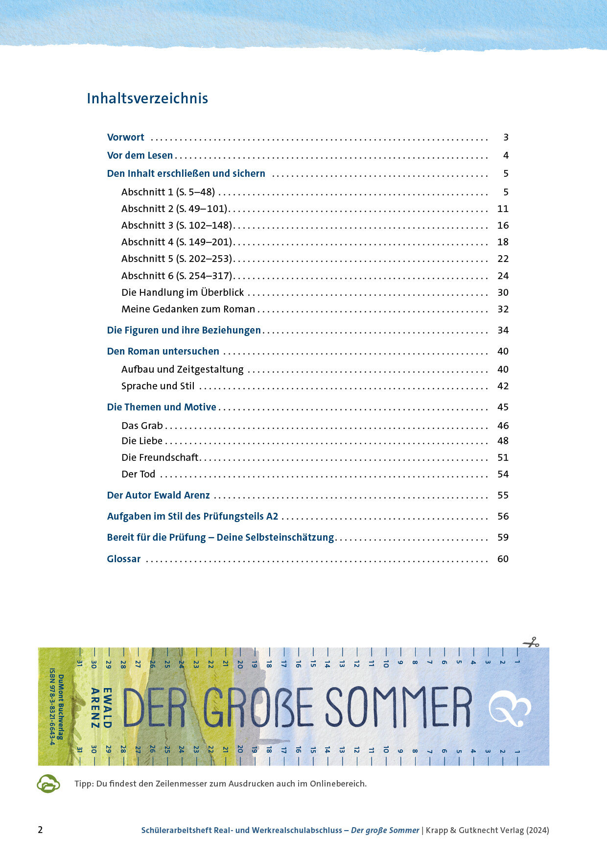 Der große Sommer Ewald Arenz Schülerarbeitsheft Realschule und Werkrealschule