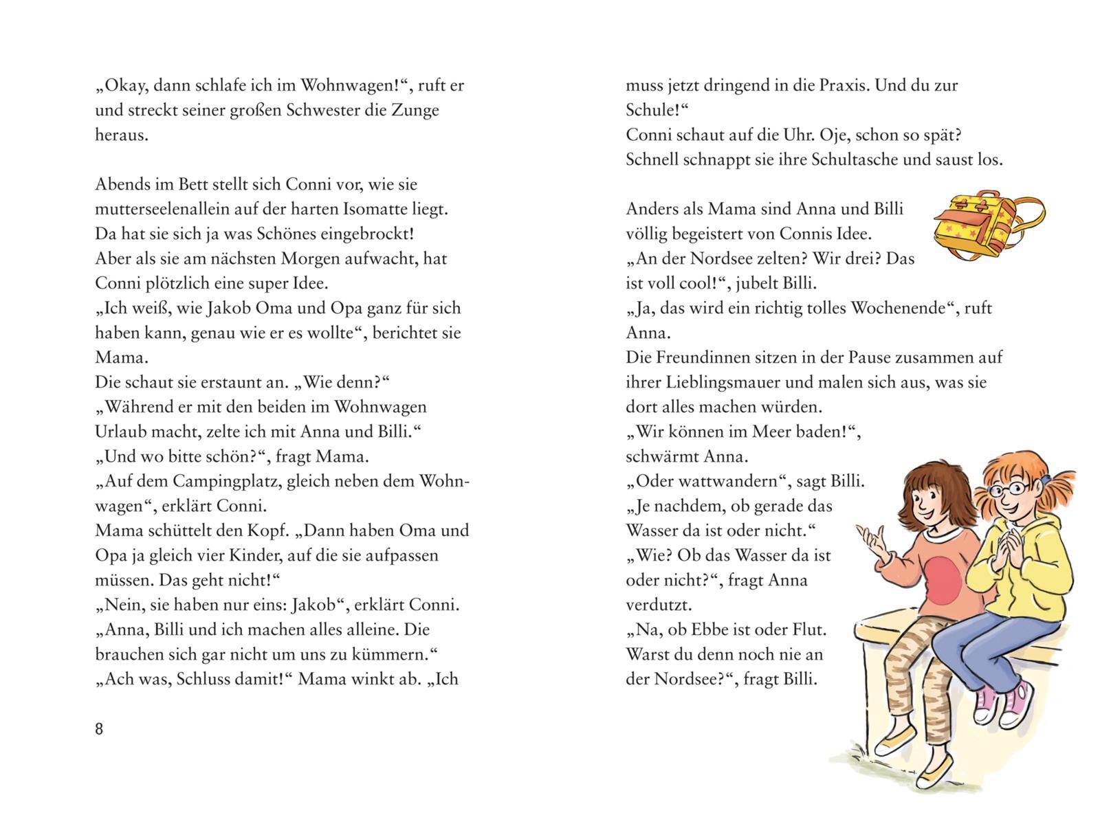 Ab ans Meer! Ein Camping-Ausflug mit Oma und Opa ans Meer? Klar, dass Conni sich da freut. Zumal sie Anna und Billi mitnehmen darf. Wattwanderungen, eine Leuchtturmbesichtigung und sogar ein Ausritt in den Dünen? Besser könnte es nicht sein! Doch dann passier...