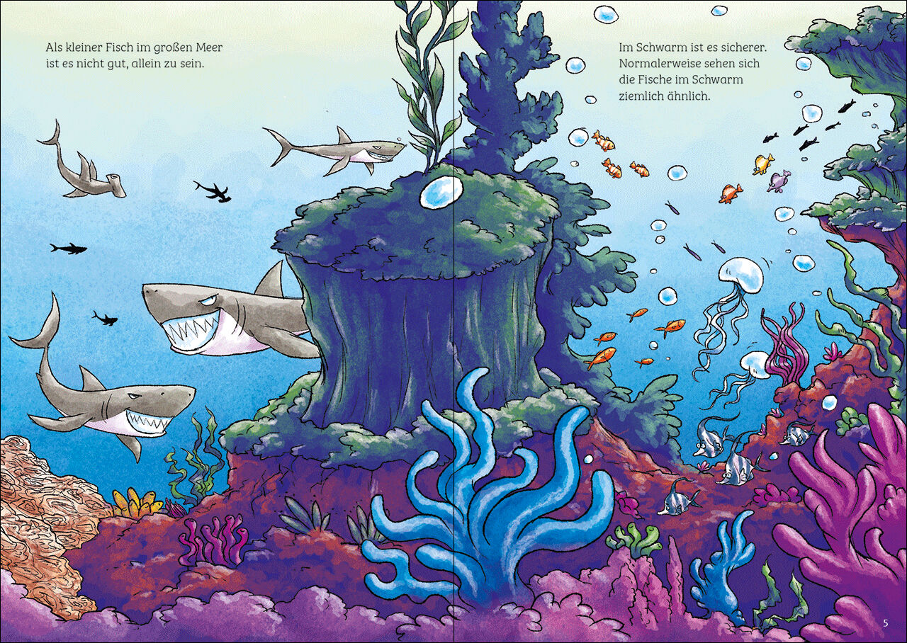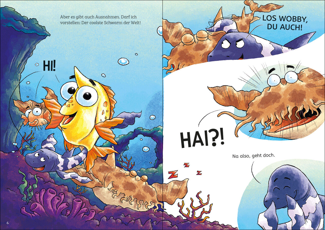 Loewe-Bücher: garantiert ohne KI Verfolgungsjagd im Riff Der coolste Schwarm der Welt hat im Schiffswrack den perfekten Unterschlupf gefunden. Dummerweise wohnt dort schon ein Krake und der hat keine Lust auf neue Nachbarn. Wobby, immer hungrig, will das Probl...