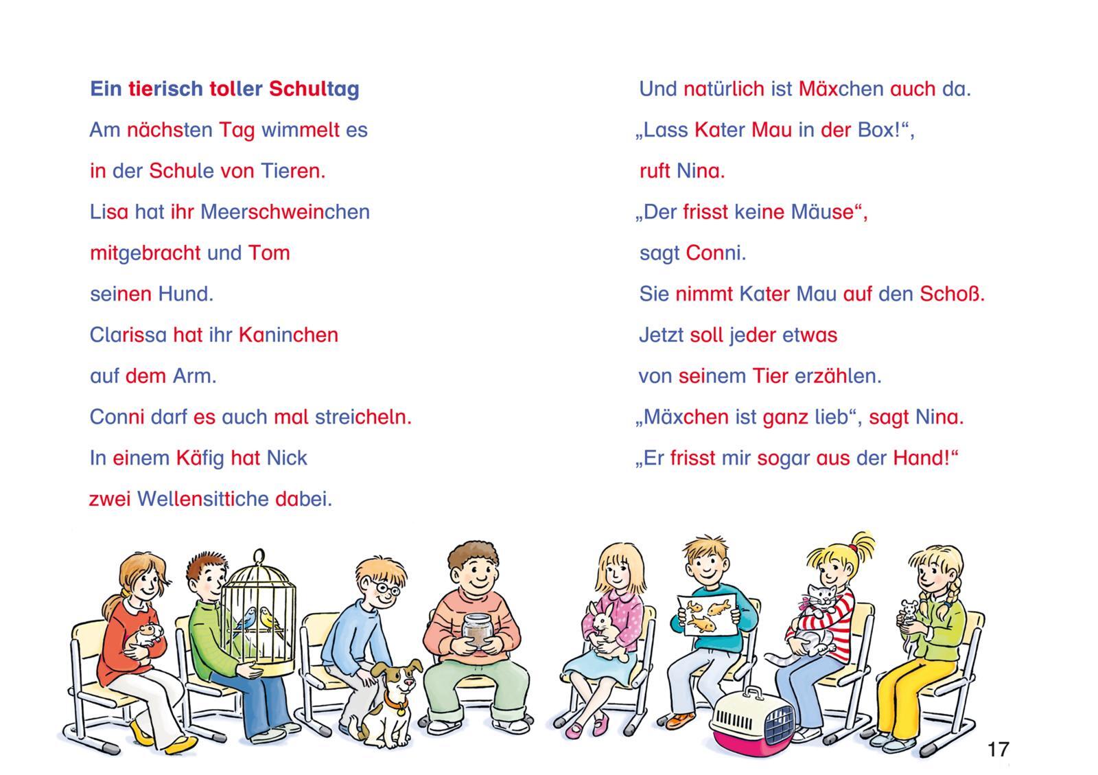 Dieser tolle Sammelband enthält drei spannende Geschichten: »Conni und die Schule voller Tiere«, »Conni und das tolle Pony-Picknick« sowie »Conni auf Waldsafari«. Alle Wörter sind in farbigen Buchstaben markiert. Diese kurzen Buchstabengruppen können Erstlese...