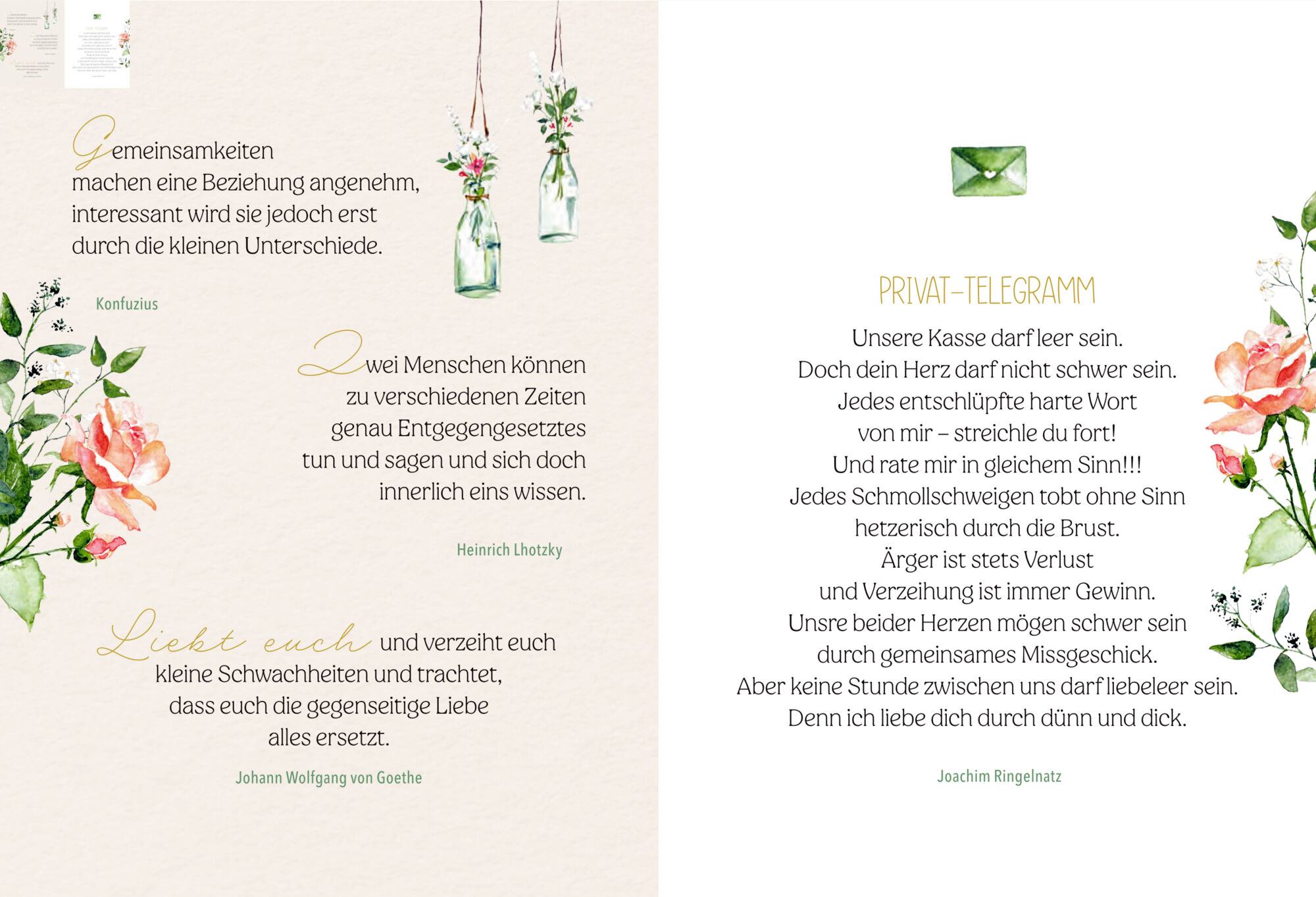 Die schönsten Gedichte und Gedanken über die Liebe sowie romantisch-moderne Illustrationen machen dieses Büchlein zu einem einfühlsamen kleinen Gruß und Geschenk für Verliebte, Verlobte und Verheiratete. Vorwort zum Verschicken und Verschenken! Autorentext Jul...